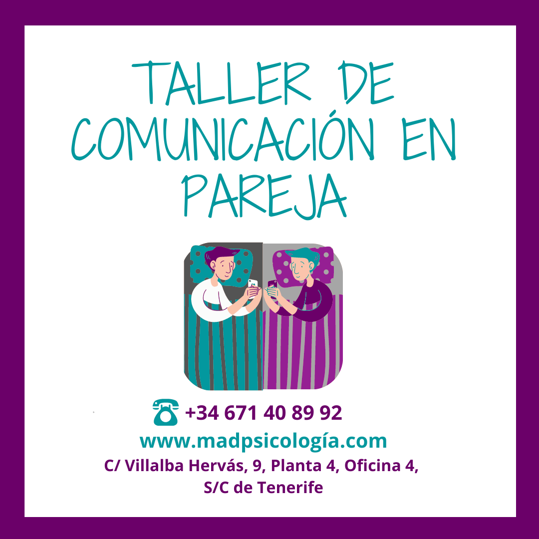Dentro de la Terapia de Pareja, el taller de Comunicación en Pareja se imparten de forma presencial en nuestro gabinete MAD Psicología...